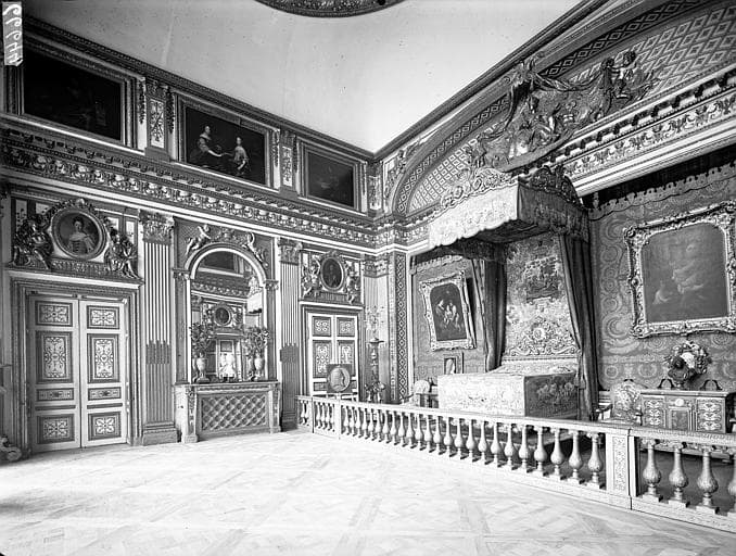 Chambre à coucher de Louis XIV, après réfection des planchers, avant la dépose de la main courante, avec la porte de gauche