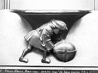 Miséricorde de stalle, grande chaire : homme faisant rouler un globe