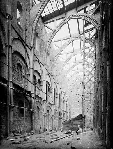Nef, réfection des voûtes, détail des doubleaux achevés