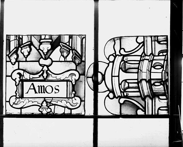 Deuxième galerie, portail sud, lancette d'Amos, dais et titulus