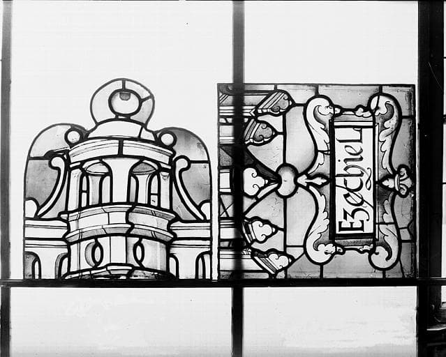 Deuxième galerie, portail sud, lancette d'Ezéchiel, dais et titulus