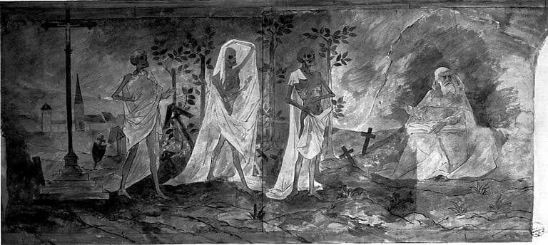 POP | Plateforme ouverte du patrimoineRelevé des archives, peinture murale : Les trois morts et les trois vifs
