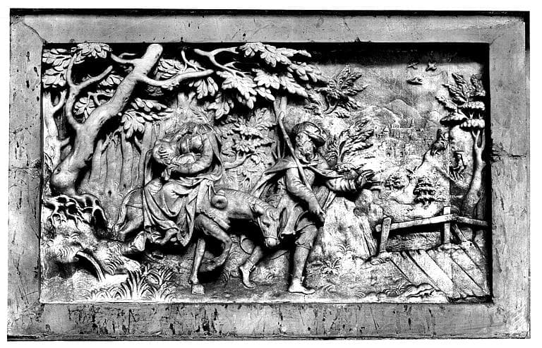 Bas-relief, Fuite en Egypte. Haut-relief : La Fuite en Egypte