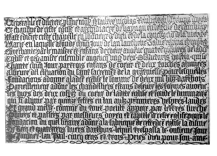 Fondation de Nicolas rembert. Inscription : Fondation de Nicolas Rembert
