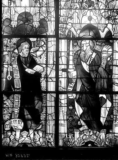 POP | Plateforme ouverte du patrimoineVitrail du transept nord, baie 13, panneaux 1 et 2 : Saint Pierre et saint Paul