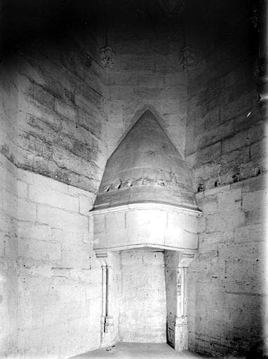 Donjon, cheminée de la tourelle au deuxième étage après la démolition du plafond