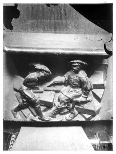 POP | Plateforme ouverte du patrimoineMiséricorde de stalle : un architecte (identifiable à ses instruments, l'équerre et le compas) et son assistant, personnification de la guilde des architectes