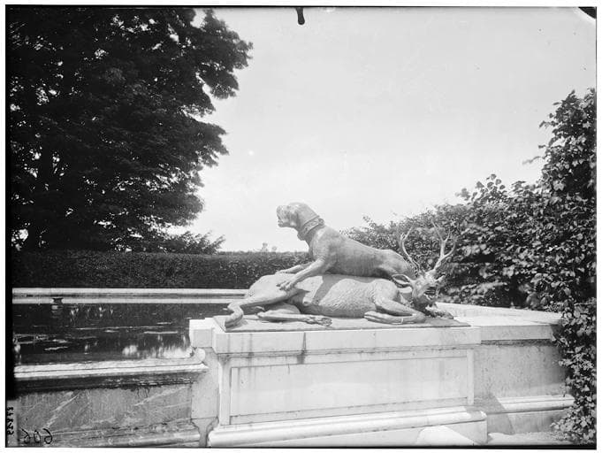 Parterre du Midi, fontaine du Point du Jour : chien et cerf, groupe sculpté