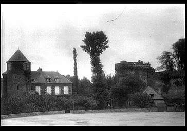 CHATEAU FORT ; FACADE NORD ; TOUR ; MACHICOULIS ; MOYEN AGE ; VEGETATION ; BATIMENT