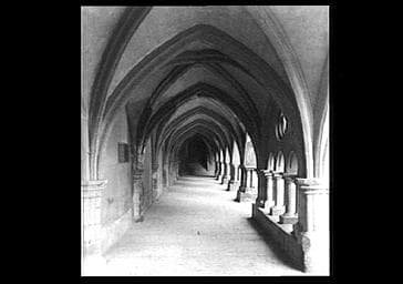 CLOITRE ; GALERIE ; INTERIEUR ; VOUTE D'OGIVE ; ART GOTHIQUE ; BAIE ; ARC EN PLEIN CINTRE ; OCULUS ; ART ROMAN