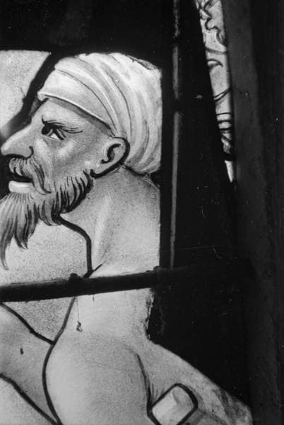 Saint Martin, sainte Catherine, saint Nicolas et saint Hubert, panneau de vitrail, baie no 2, détail