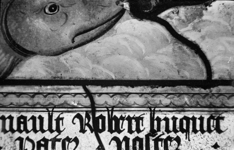 POP | Plateforme ouverte du patrimoineSainte Barbe, saint Eustache et saint Jean-Baptiste, combat naval, panneau de vitrail, baie no 3, détail
