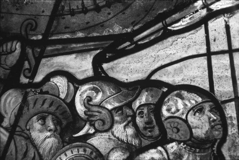 POP | Plateforme ouverte du patrimoineSainte Barbe, saint Eustache et saint Jean-Baptiste, combat naval, panneau de vitrail, baie no 3, détail