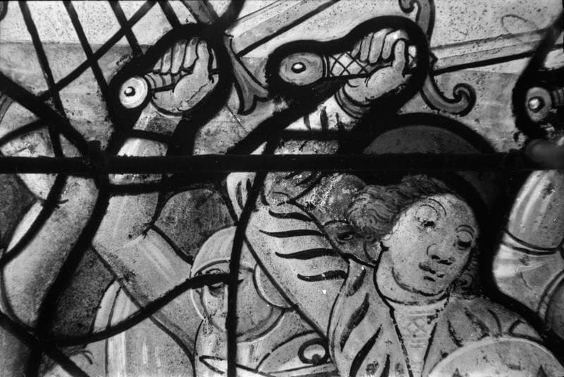POP | Plateforme ouverte du patrimoineSainte Barbe, saint Eustache et saint Jean-Baptiste, combat naval, panneau de vitrail, baie no 3, détail