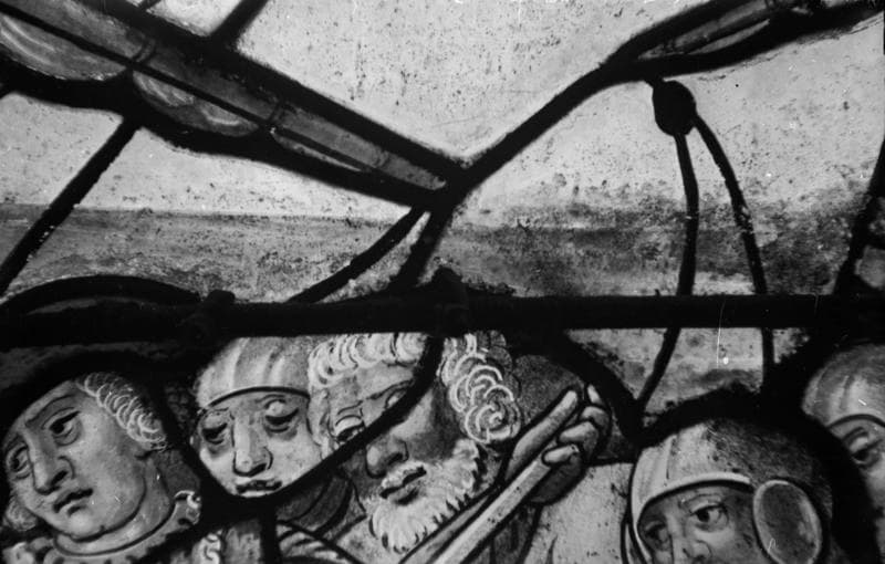 POP | Plateforme ouverte du patrimoineSainte Barbe, saint Eustache et saint Jean-Baptiste, combat naval, panneau de vitrail, baie no 3, détail