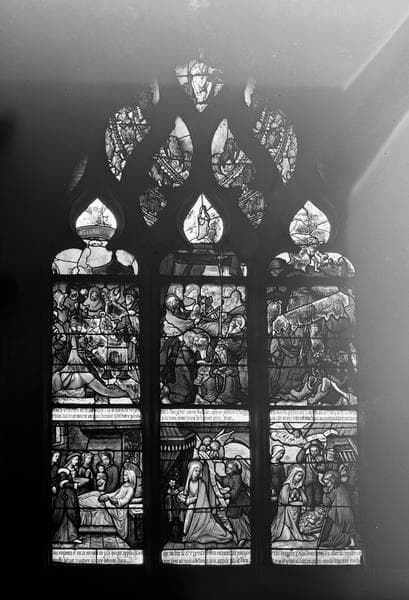 Vie de la Vierge, panneau de vitrail, baie no 5, ensemble