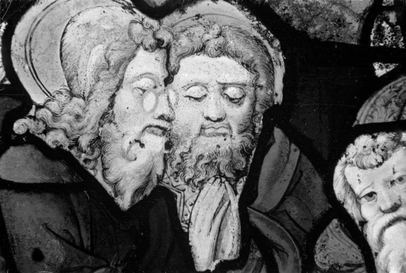 Vie de la Vierge, panneau de vitrail, baie no 5, détail