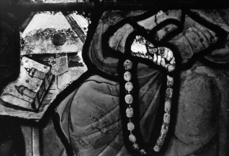 Vie de la Vierge, panneau de vitrail, baie no 5, détail