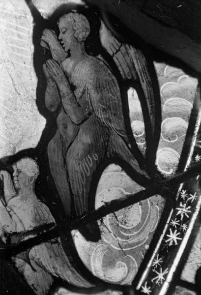 Vie de la Vierge, panneau de vitrail, baie no 5, détail