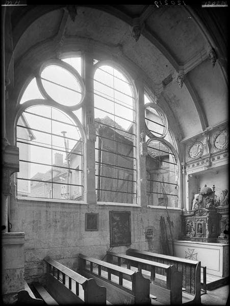 Intérieur du choeur côté nord, dépose de vitraux
