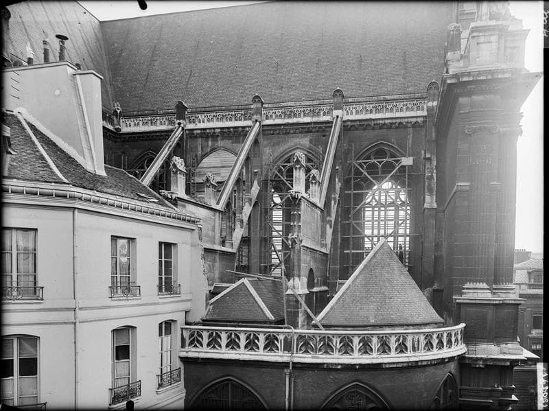 POP | Plateforme ouverte du patrimoineExtérieur de la façade nord, échafaudages de dépose des vitraux des fenêtres hautes
