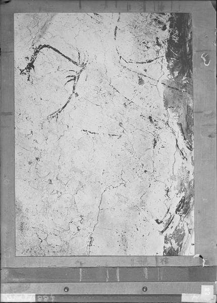 Cerf blessé dont il ne subsiste que la ramure et les pattes, fresque de la paroi gauche de l'abside