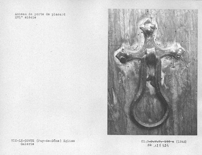 Tribune, porte de placard dans la tribune derrière le retable, anneau de porte en fer forgé