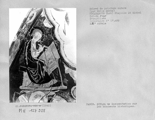Relevé de peinture murale du cul-de-four : évangéliste