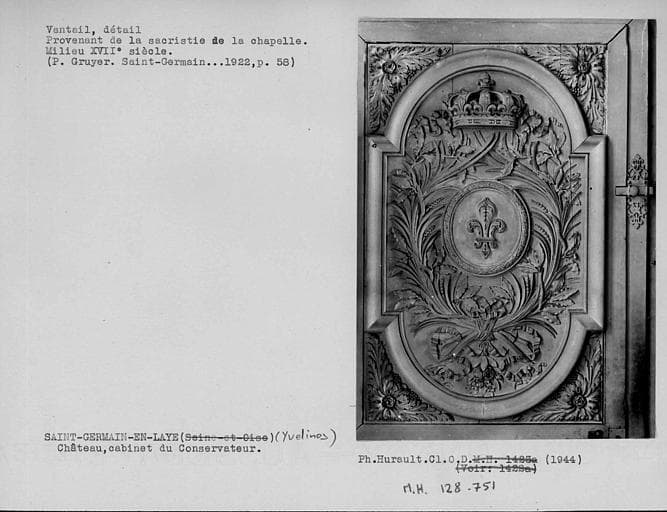 POP | Plateforme ouverte du patrimoineArmes de France ornant le vantail de porte provenant de la sacristie de la chapelle, cabinet du conservateur