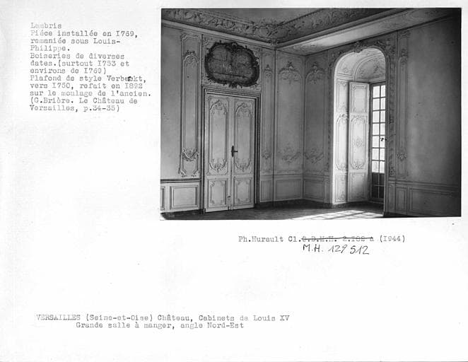 POP | Plateforme ouverte du patrimoineDécor des cabinets Louis XV, lambris de la grande salle-à-manger, vue d'ensemble de l'angle nord-ouest