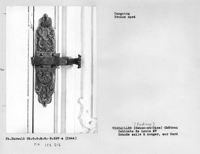 Cabinets Louis XV, grande salle-à-manger, targette en bronze doré de la porte du mur nord vers la fenêtre