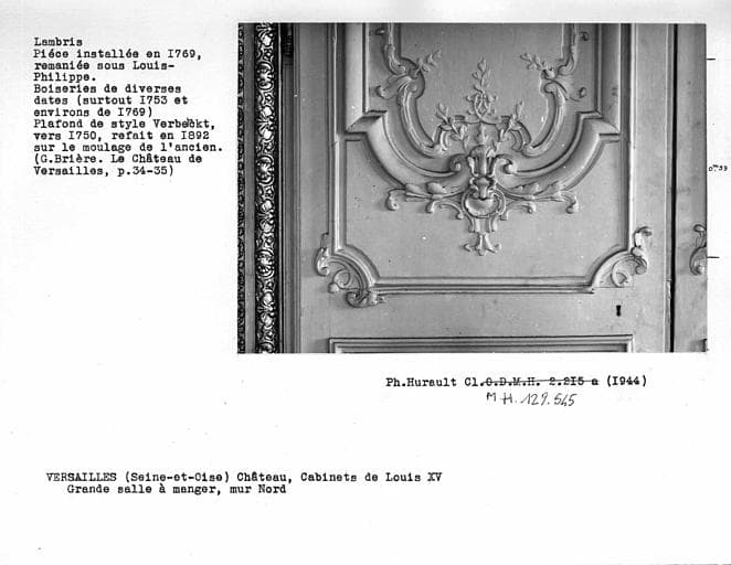 POP | Plateforme ouverte du patrimoineDécor des cabinets Louis XV, lambris de la grande salle-à-manger, détail de la porte de gauche, mur nord