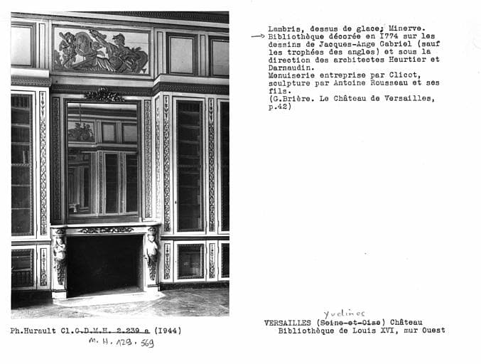 POP | Plateforme ouverte du patrimoineLambris de la bibliothèque de Louis XVI, partie centrale du mur ouest, dessus de glace : Minerve