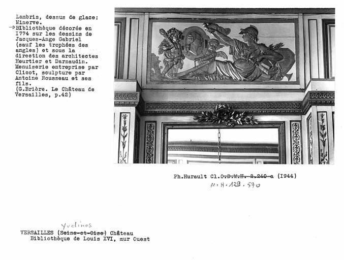 POP | Plateforme ouverte du patrimoineLambris de la bibliothèque de Louis XVI, sculpture décorative au-dessus de la glace du mur ouest : Minerve