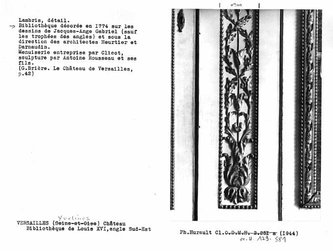 POP | Plateforme ouverte du patrimoineLambris du mur est de la bibliothèque de Louis XVI, détail de boiserie à droite de la porte de droite