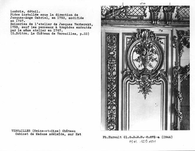 Décor du salon de Madame Adélaïde, détail de lambris à gauche du miroir, mur est