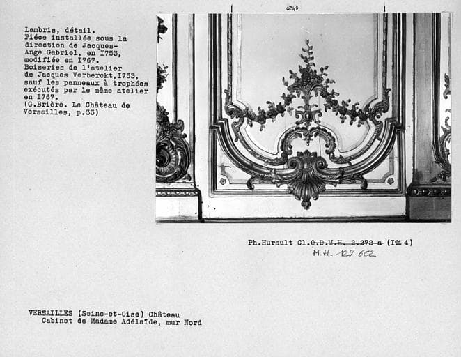 POP | Plateforme ouverte du patrimoineDécor du salon de Madame Adélaïde, détail de lambris en haut à droite du miroir, mur nord