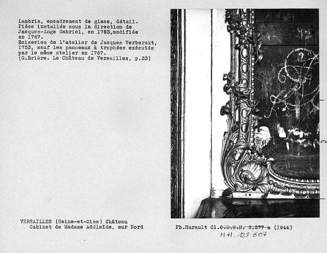 Décor du salon de Madame Adélaïde, dessus de cheminée, partie inférieure gauche du miroir, mur nord