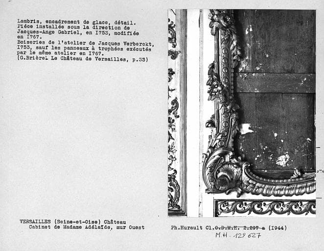 POP | Plateforme ouverte du patrimoineDécor du salon de Madame Adélaïde, détail d'encadrement du miroir du mur ouest, partie gauche basse