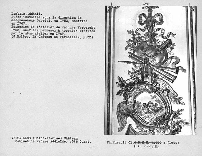 POP | Plateforme ouverte du patrimoineDécor du salon de Madame Adélaïde, lambris, détail du trophée à gauche du miroir
