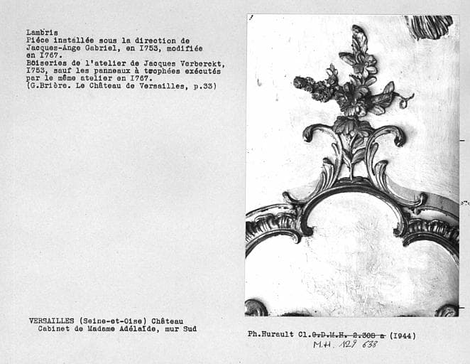 Décor du salon de Madame Adélaïde, lambris, détail à droite du panneau de boiserie, angle sud-ouest du mur sud