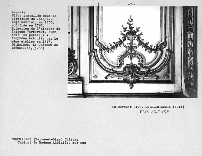 Décor du salon de Madame Adélaïde, lambris, détail du panneau à droite de la fenêtre, angle sud-ouest du mur sud