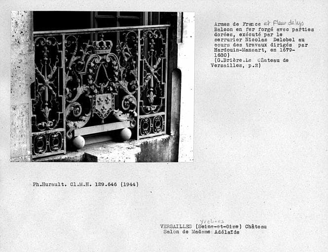 Armes de France et fleur de Lys ; Balcon et barre d'appui (fer forgé)