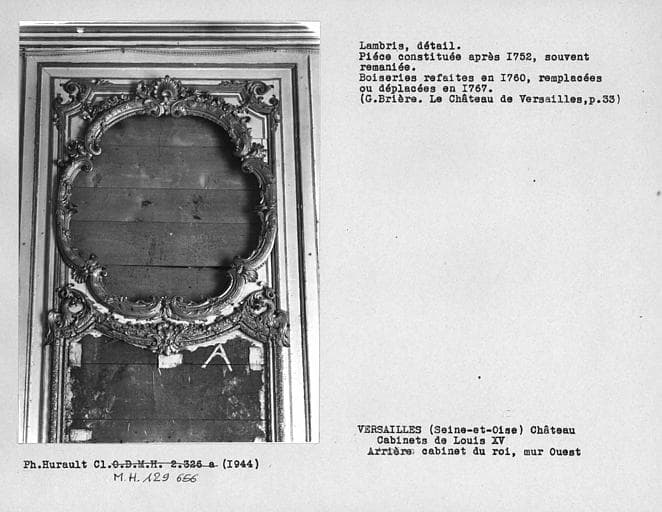 POP | Plateforme ouverte du patrimoineDécor des cabinets Louis XV, lambris de l'arrière cabinet du roi, médaillon au-dessus du miroir du mur ouest