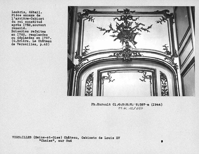 Décor des cabinets Louis XV, détail de lambris du cabinet voisin de l'arrière cabinet de Louis XV, partie supérieure des boiseries du mur sud