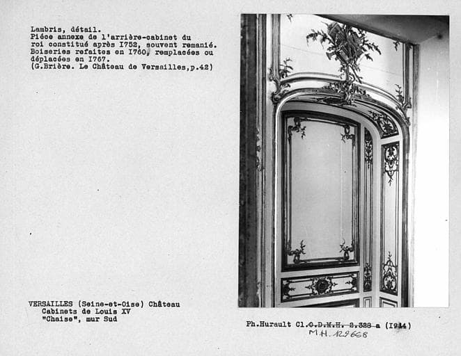Décor des cabinets Louis XV, détail de lambris du cabinet voisin de l'arrière cabinet de Louis XV, ensemble des boiseries du mur ouest
