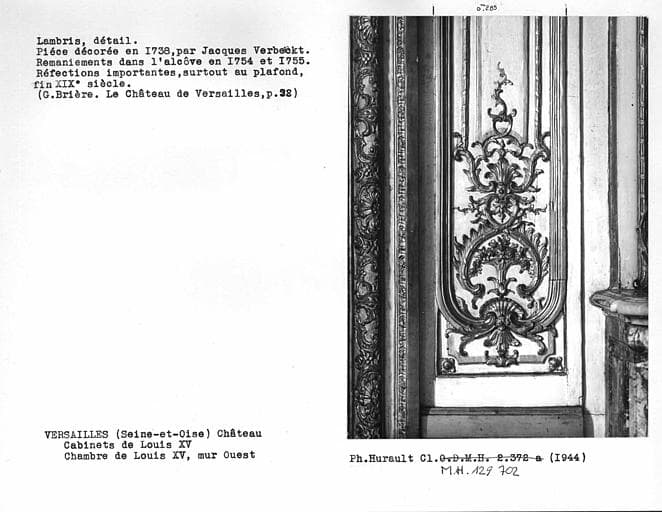 POP | Plateforme ouverte du patrimoineDécor des cabinets de Louis XV, lambris de la chambre de Louis XV, détail du petit panneau à gauche du miroir, mur ouest