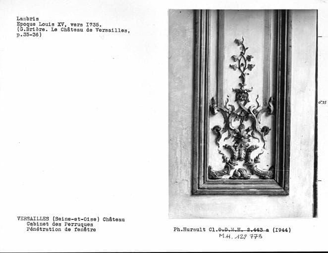 POP | Plateforme ouverte du patrimoineDécor du cabinet des perruques, lambris, détail de l'embrasure gauche de la fenêtre