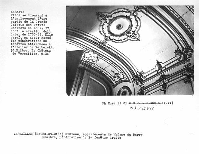 Décor des appartements de Madame du Barry, lambris de la chambre, plafond de l'embrasure de la fenêtre droite
