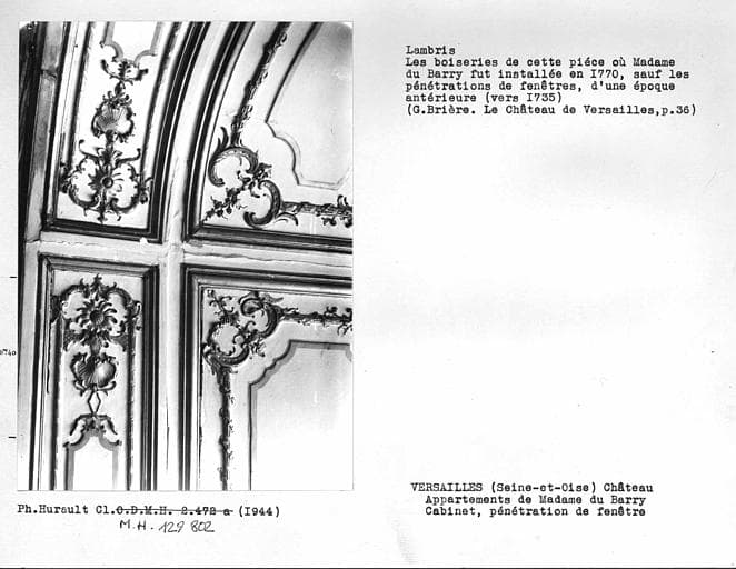 POP | Plateforme ouverte du patrimoineDécor des appartements de Madame du Barry, lambris du cabinet, détail de l'embrasure de la fenêtre gauche, mur sud